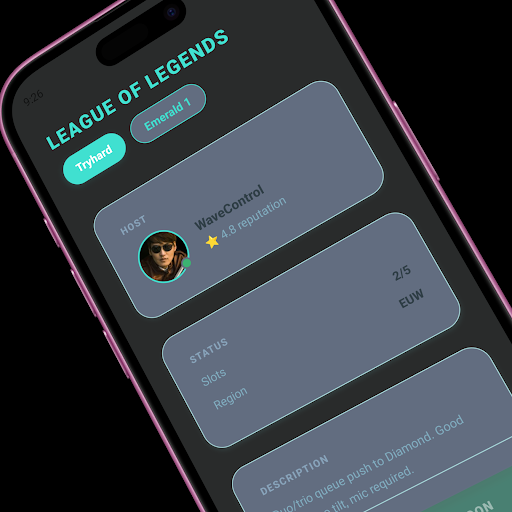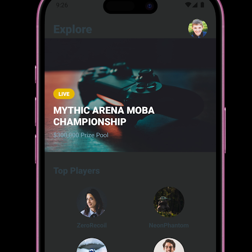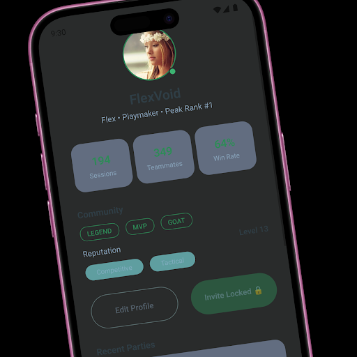 The app features a clean, modern interface designed for gaming communities. FlexArena focuses on helping players connect faster and making the process of finding teammates simple and efficient.