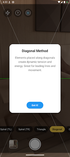 ProFrame Camera is a photography app for those who want to improve their photography skills. The app offers various composition grids such as Rule of Thirds, Golden Ratio, Spiral, Triangle, Diagonal, etc., helping you accurately and professionally align your subject and frame. Additionally, the sensor-based Level Indicator helps you keep your camera straight, preventing tilted images. The user-friendly interface allows you to customize the color and transparency of the grid and provides intuitive composition tips. ProFrame Camera is a powerful tool for both beginners and professional photographers who want to create impressive, well-composed photos.